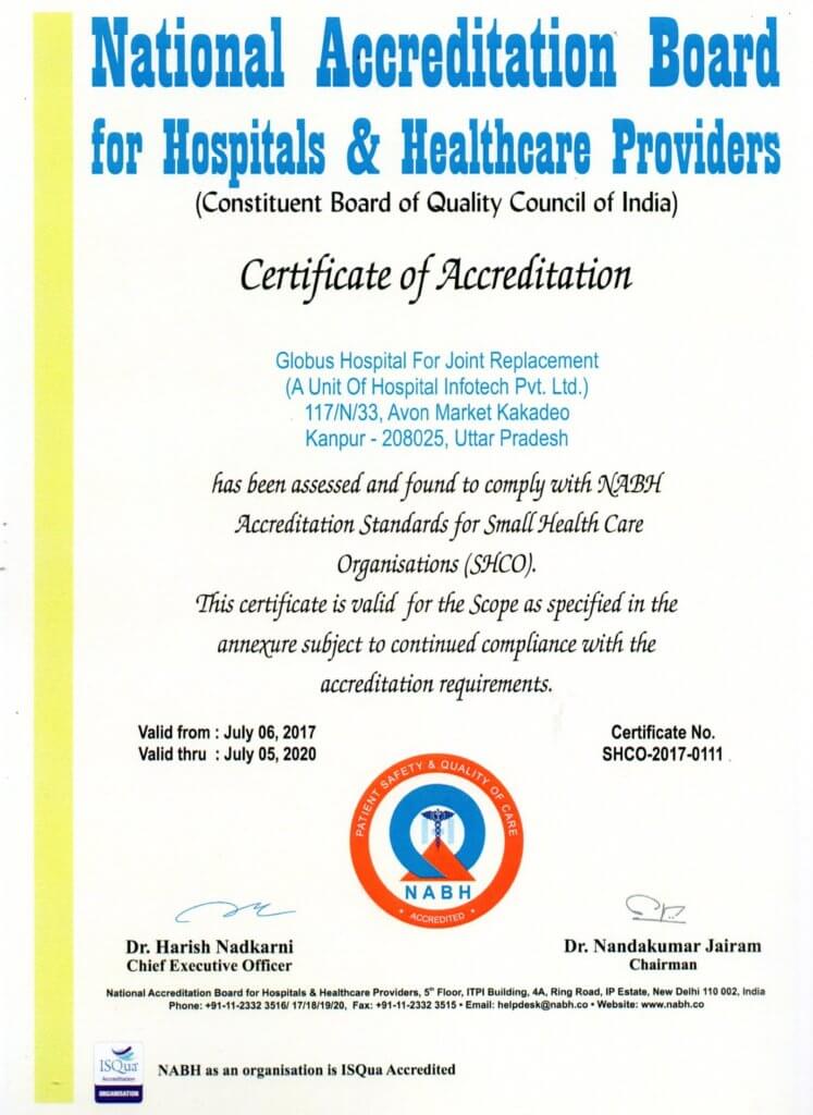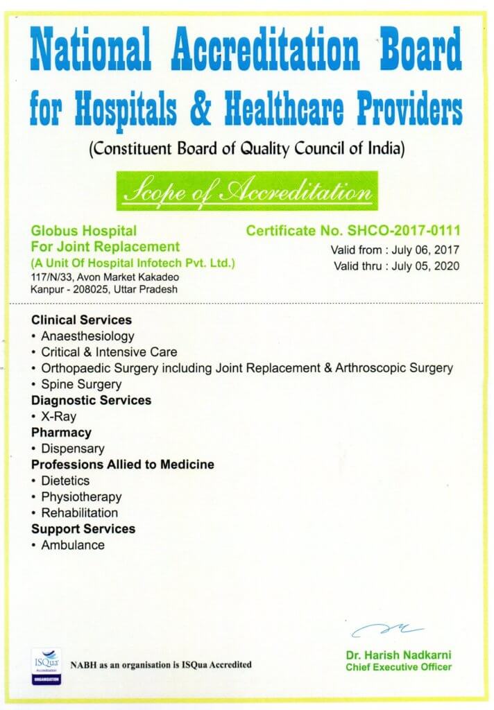 Globus Hospital for Joint Replacement is the only specialised joint replacement centre in Uttar Pradesh, to be NABH accredited.